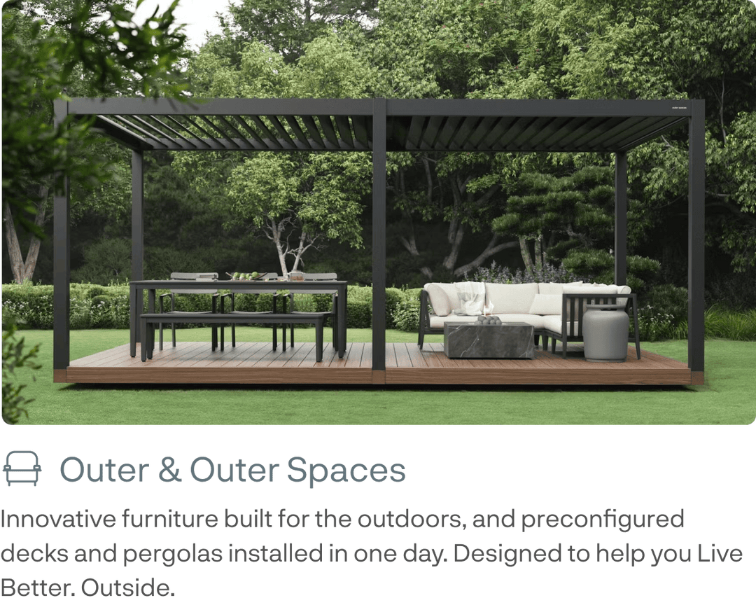 and Outer Spaces preconfiqured deck & pergola systemto reimagine what outdoor living can be.