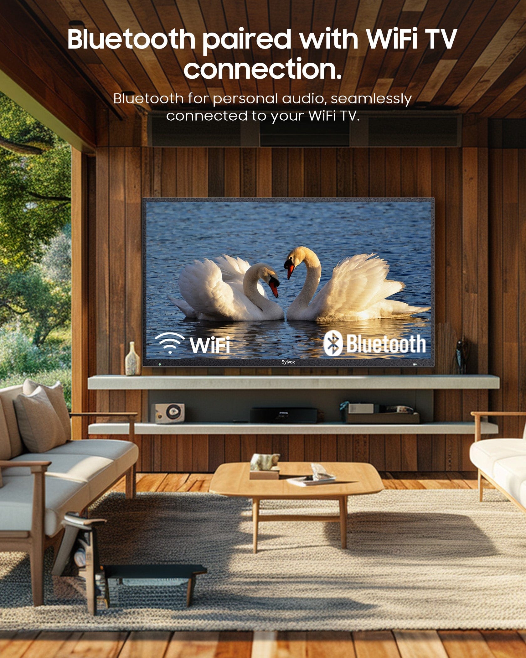 Built entirely from high-quality metal, the Sylvox Outdoor TV withstands rain, wind, and sun—delivering year-round durability.