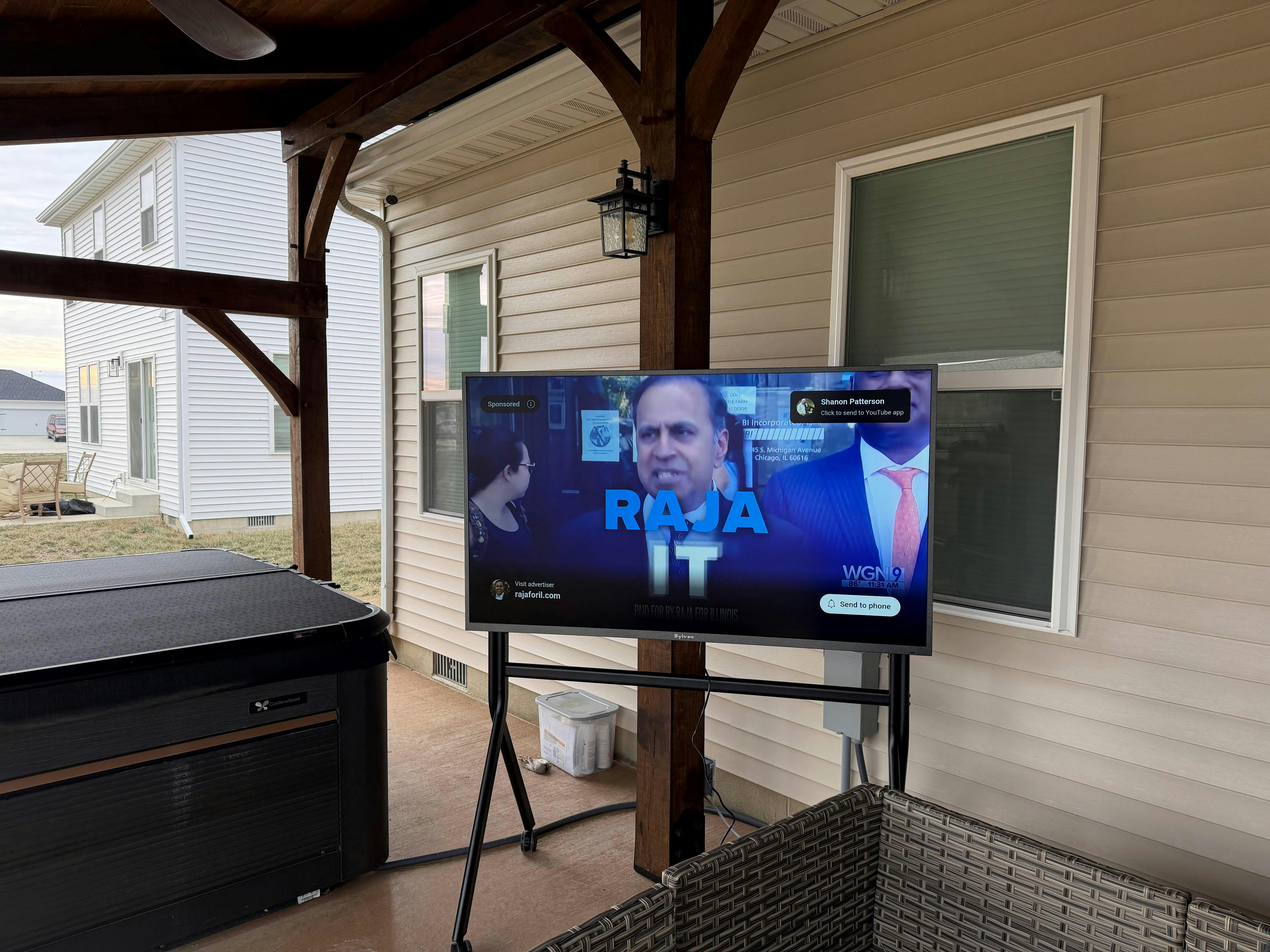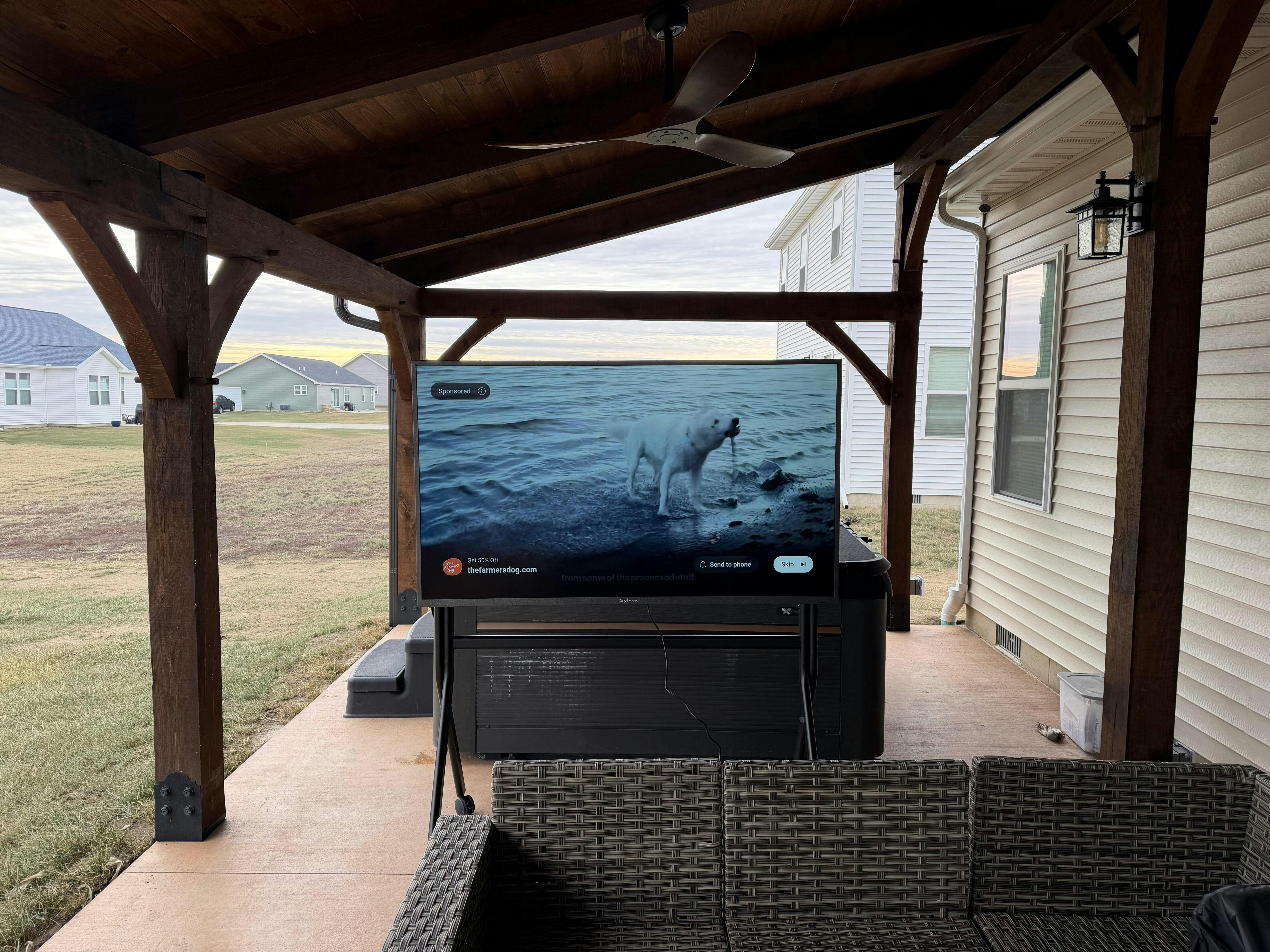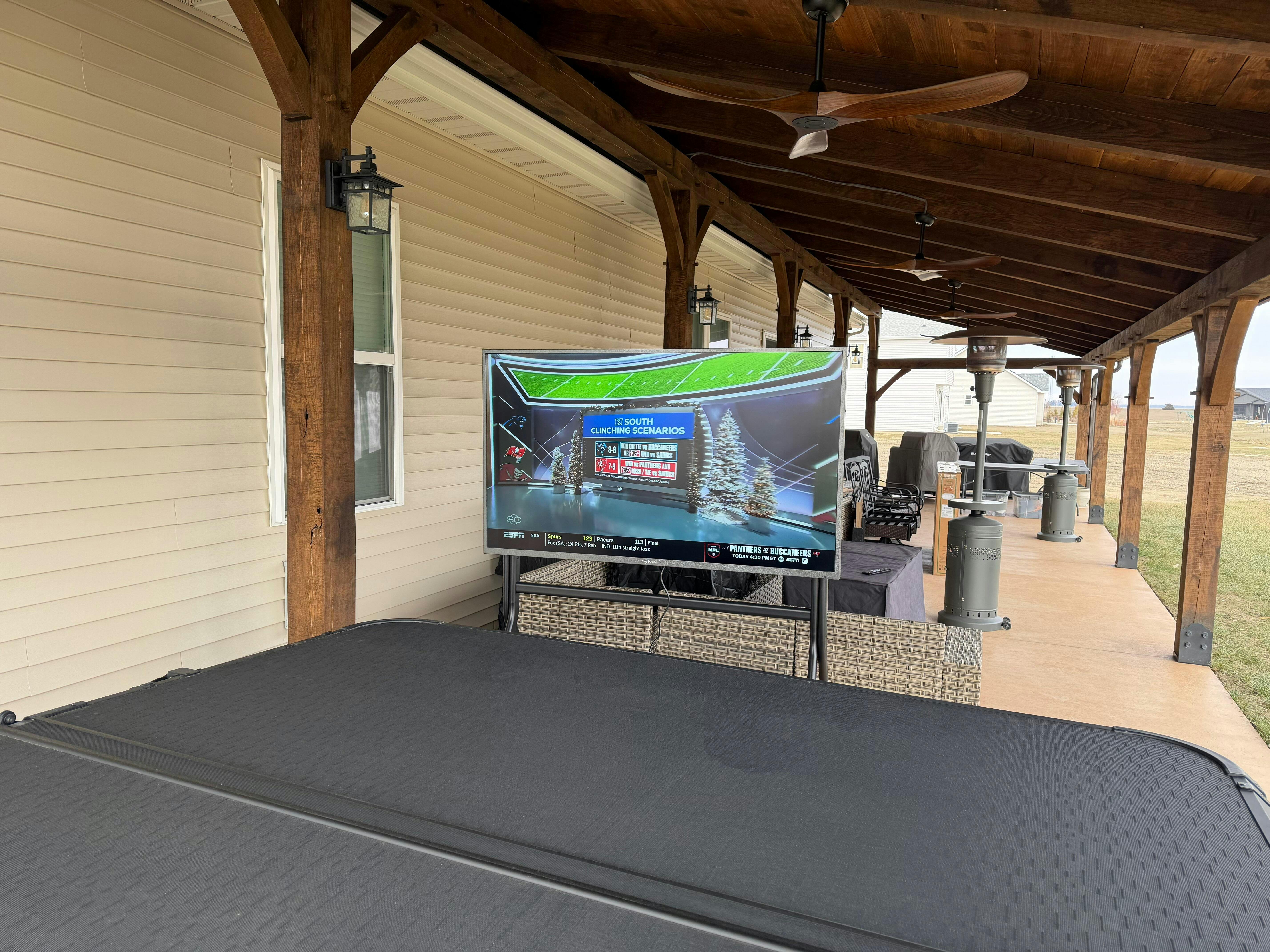 Gaming 65" Outdoor TV with Ceiling Mount & S3 Outdoor Soundbar